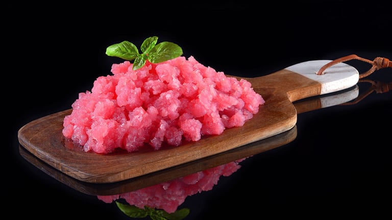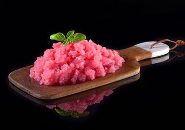 Tuna Mince is finely ground and vacuum-packed into individual one-pound bags to maintain excellent color, texture and flavor. Our Tuna Mince is processed and packaged according to strict quality and sanitation control guidelines. Perfect for retail, restaurants, foodservice operators and distributor applications for the preparation of sashimi rolls, tartar, fish burgers and other gourmet cooking. Also available is Tuna Mince with OK-P and Chasam Sofer Kosher certification.