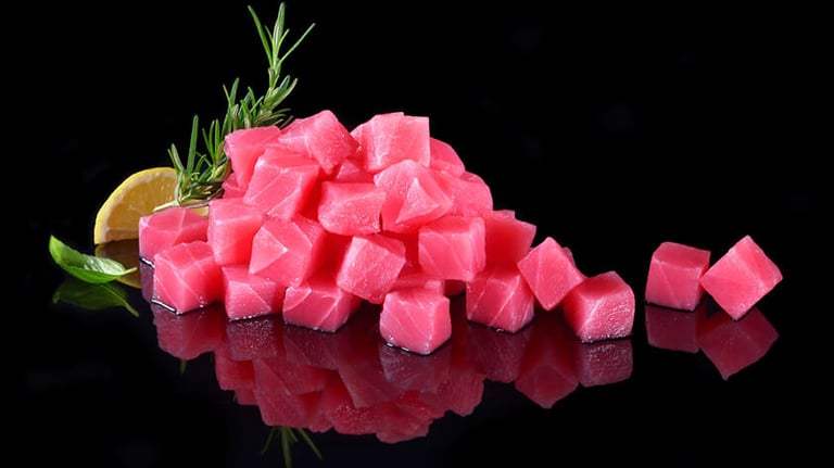 Tuna Cubes are consistently cut-to-size and vacuum-packed into individual one-pound bags to maintain excellent color, texture and flavor. Produced and packaged according to strict quality and sanitation control guidelines, and perfect for retail, restaurants, foodservice operators and distributor applications